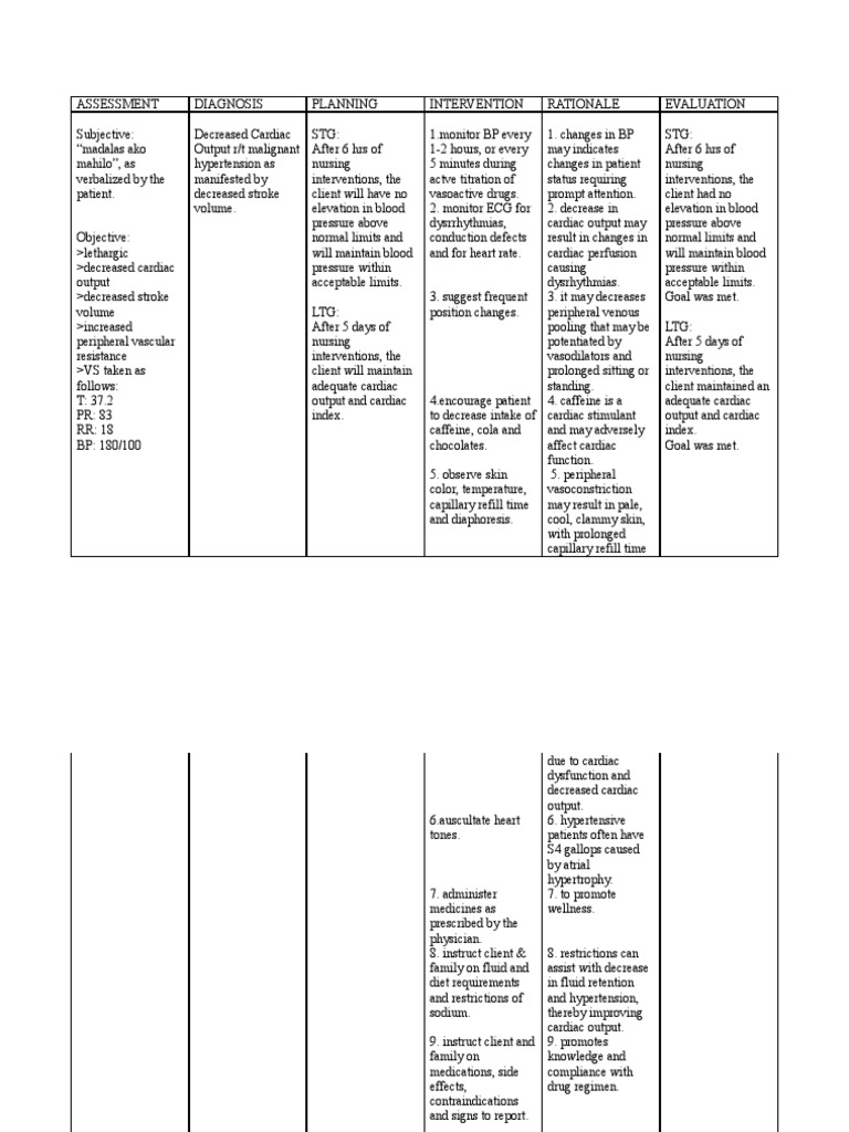 Nursing Care Plan For Hypertension Pdf Hypertension Heart